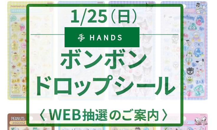 1月25日(日)の「ボンボンドロップシール」の購入でのWEB抽選をハンズ博多さんで行うようです。